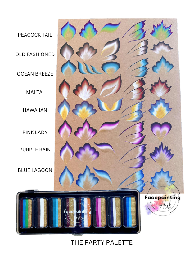 - 🍸 Palette Party avec 8 splitcakes : Peacock Tail, Old Fashioned, Ocean Breeze, Mai Tai, Hawaiian, Pink Lady, Purple Rain, Blue Lagoon